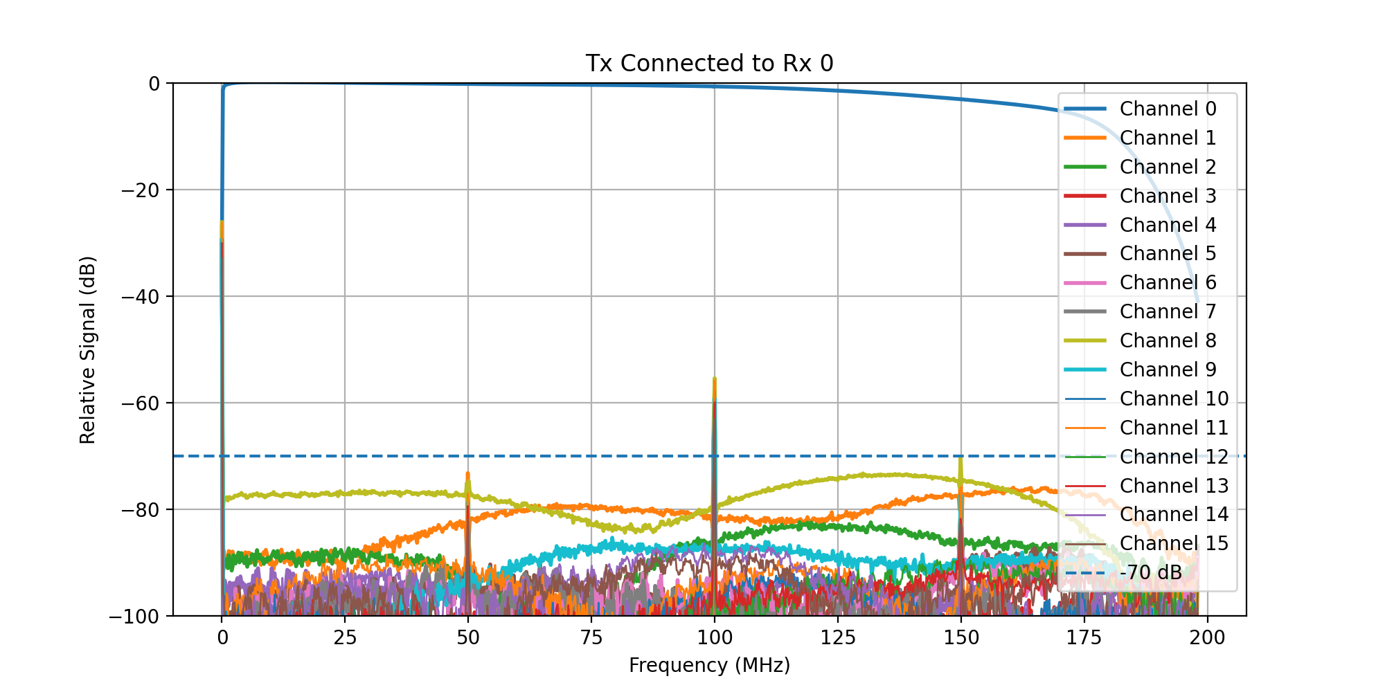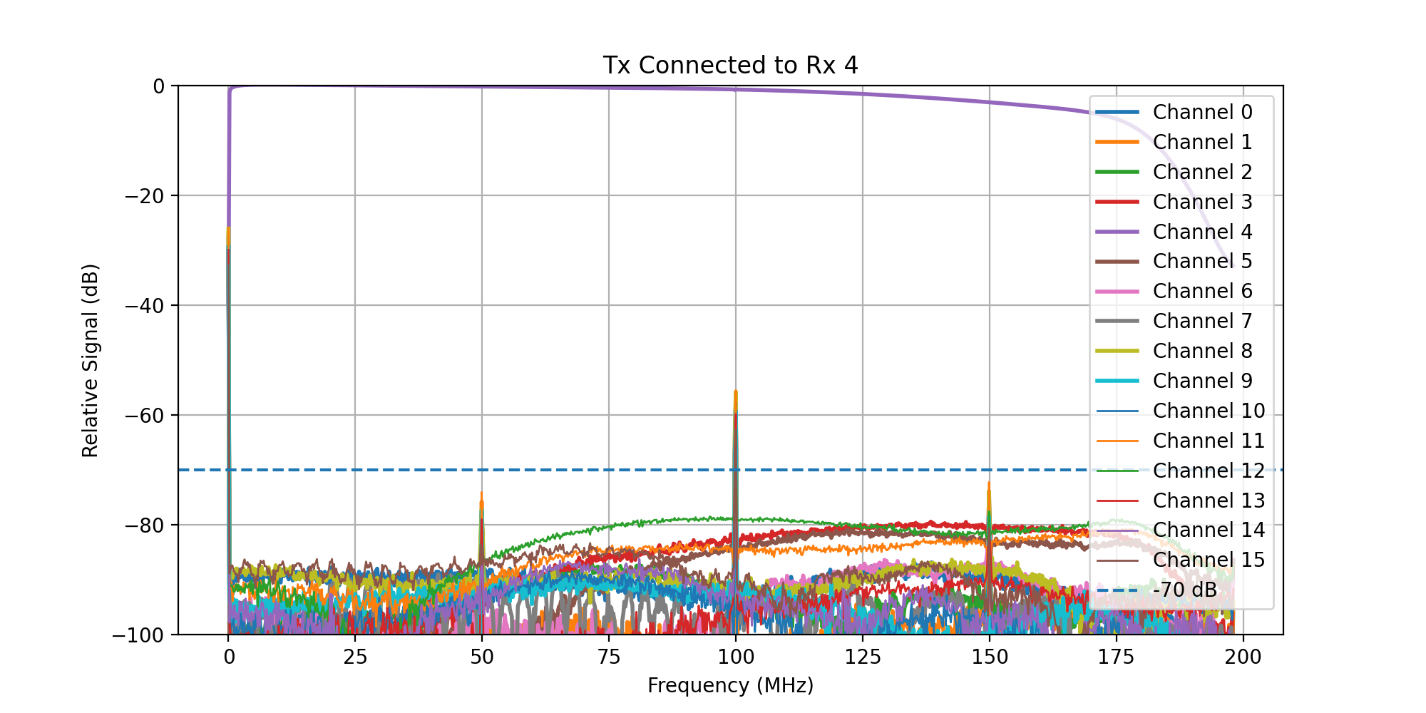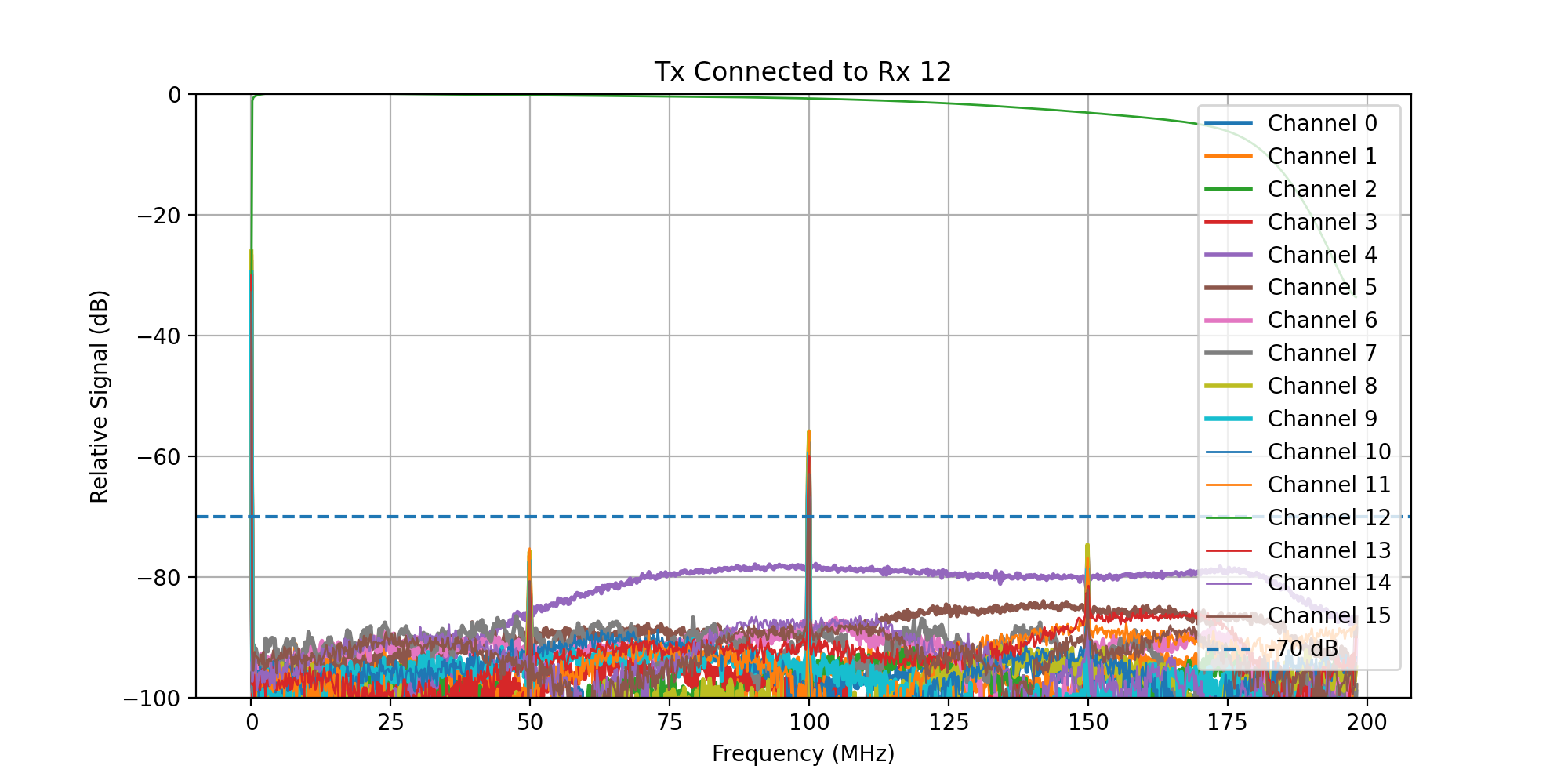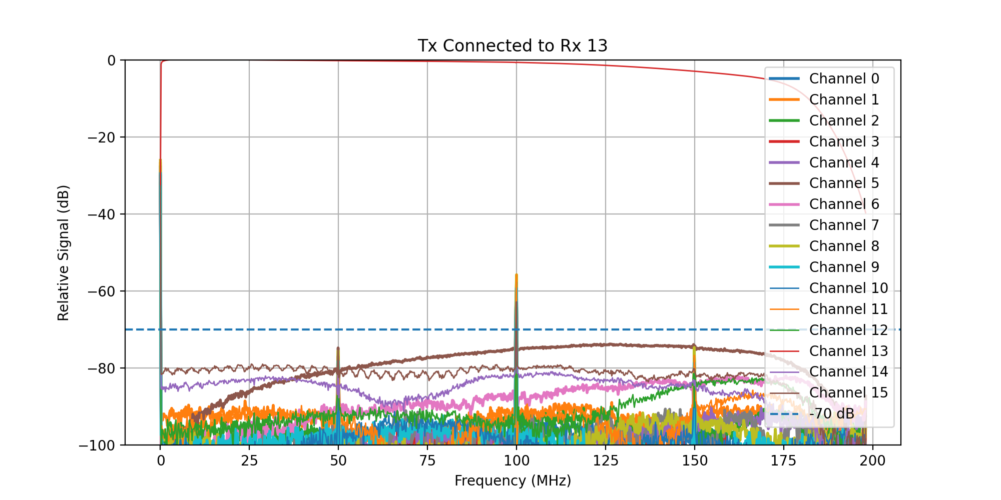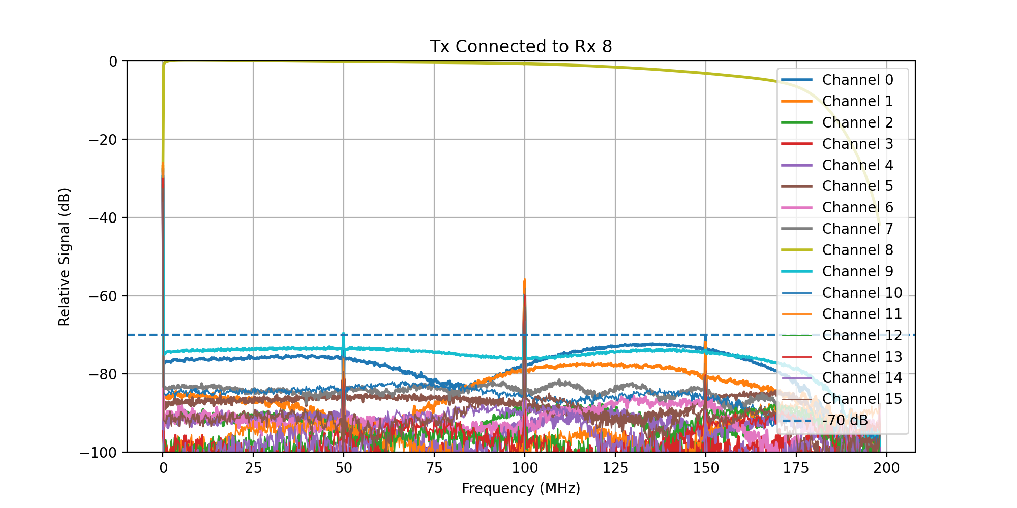 A frequency sweep from 0 - 200 MHz was then transmitted, while acquiring signal on all Rx channels.