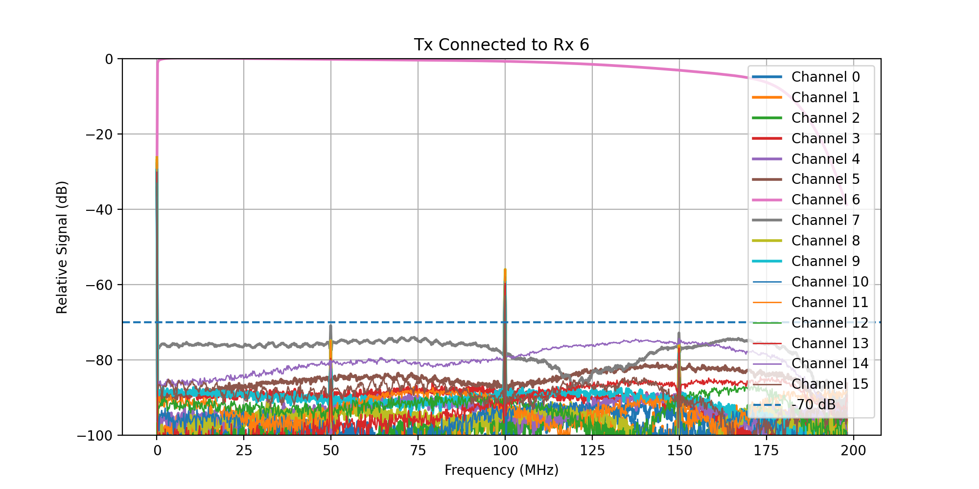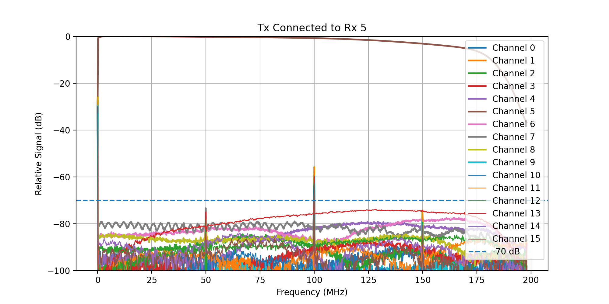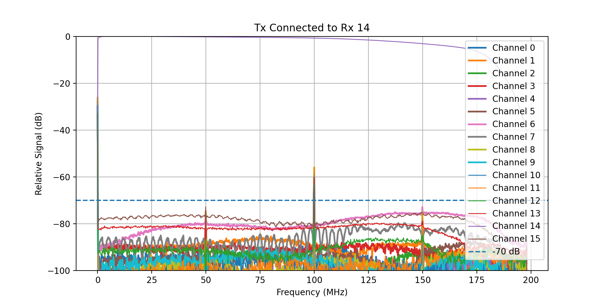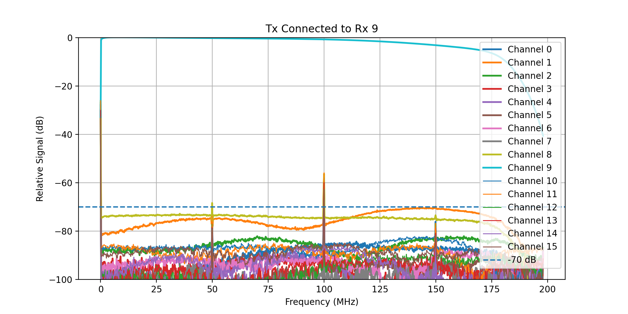 A frequency sweep from 0 - 200 MHz was then transmitted, while acquiring signal on all Rx channels.