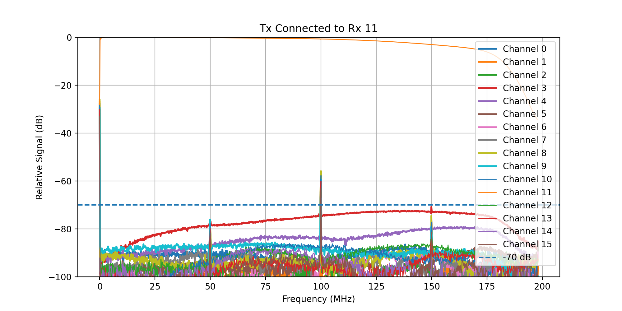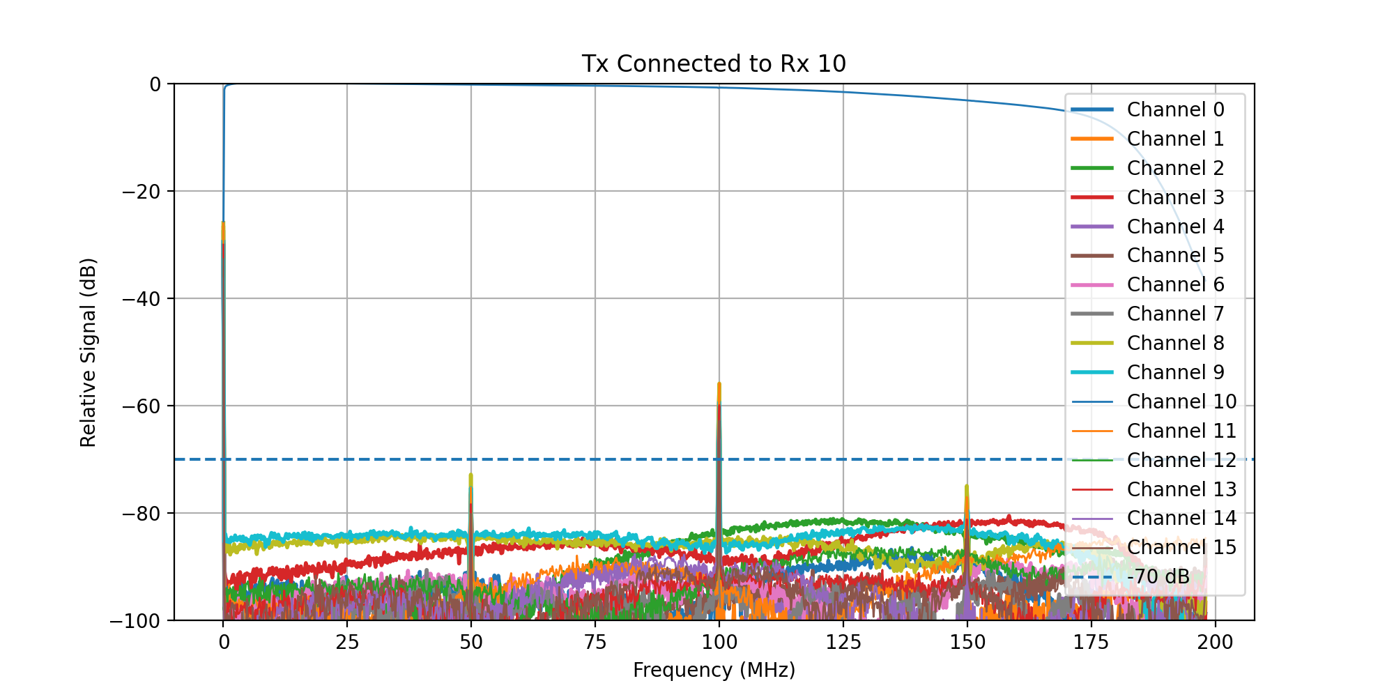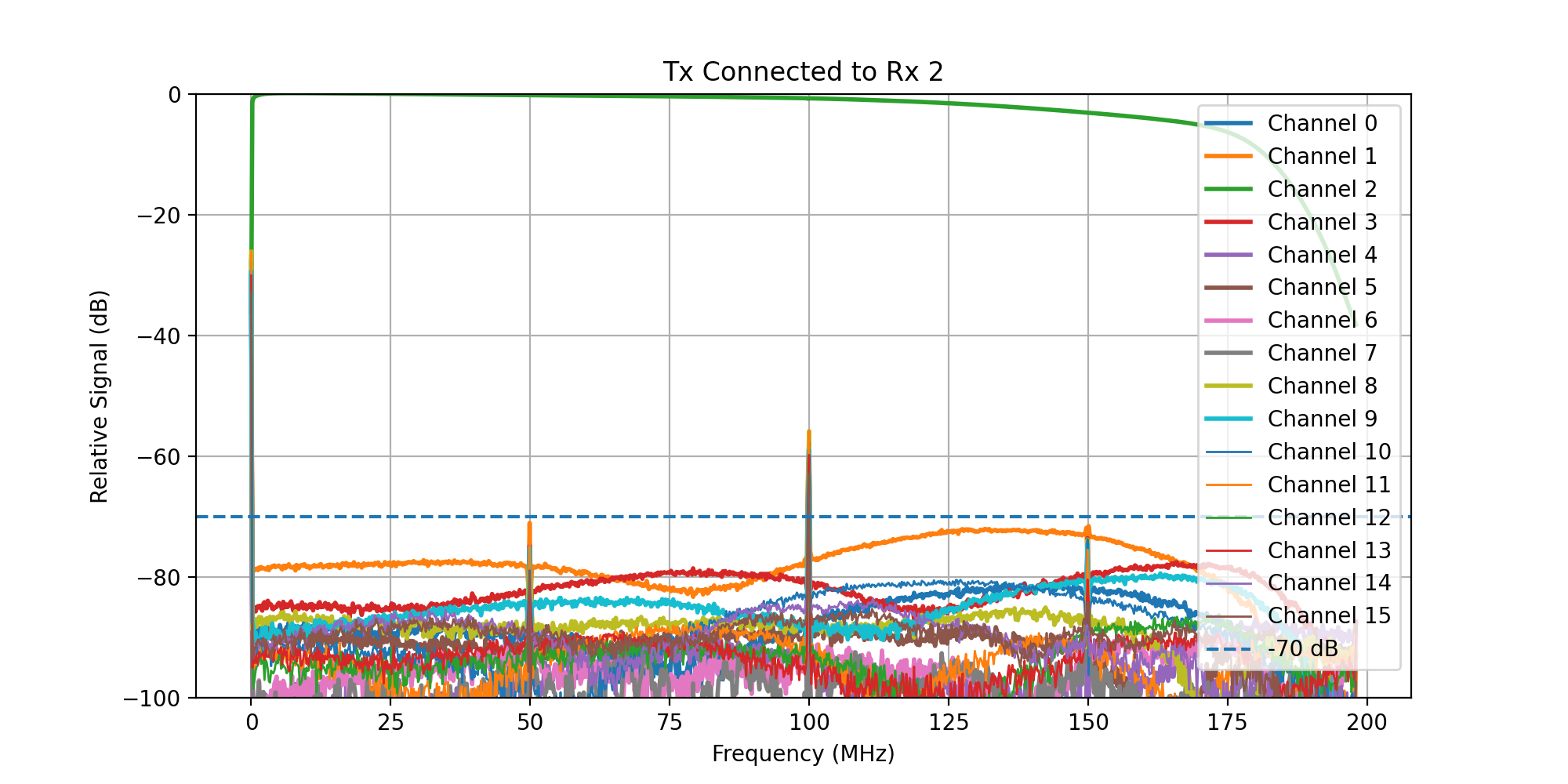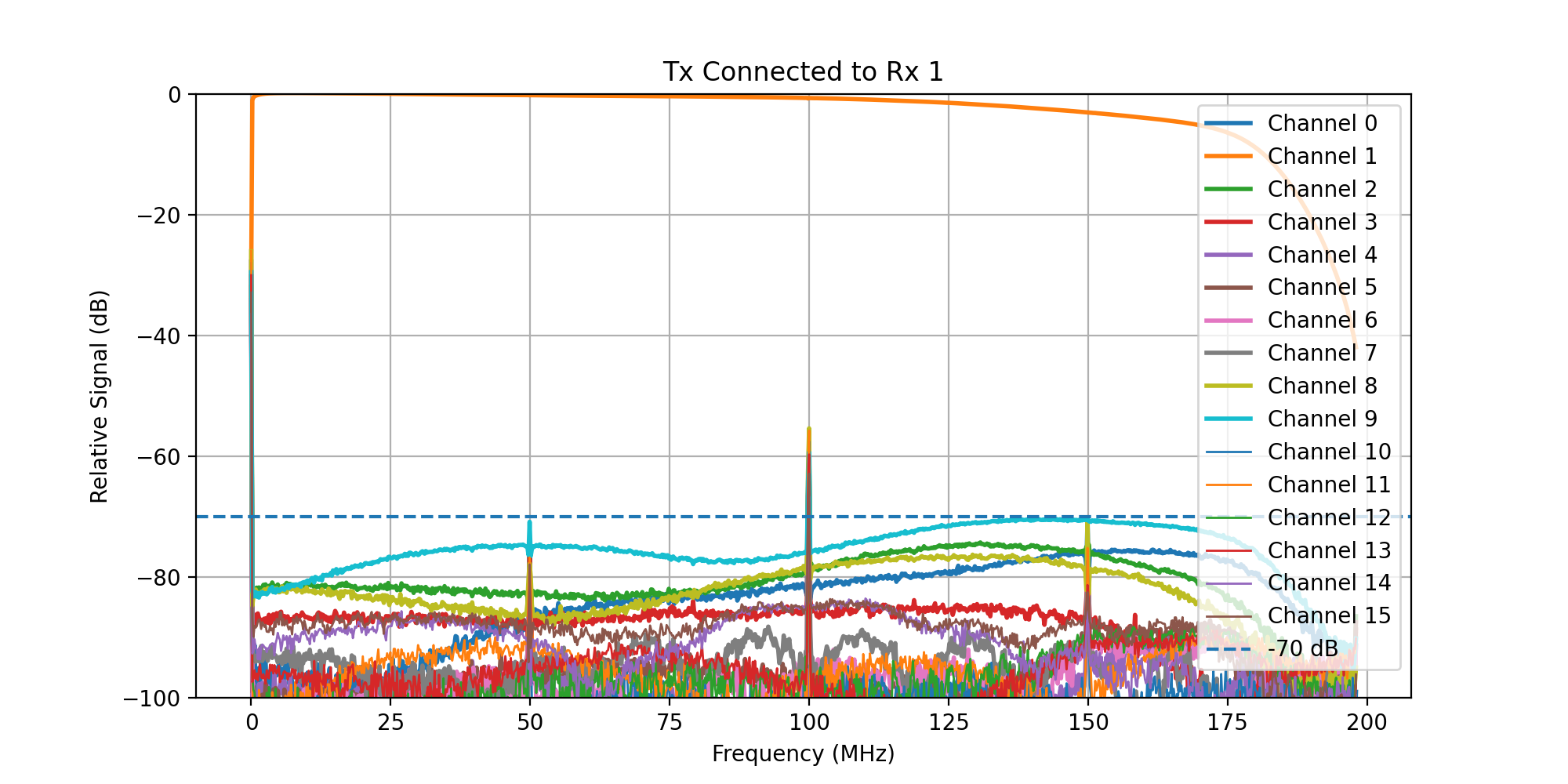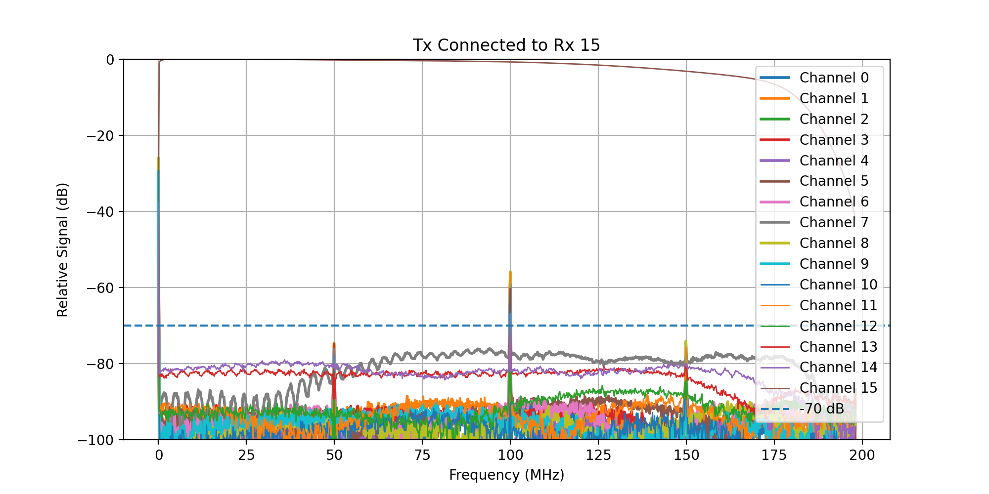 A frequency sweep from 0 - 200 MHz was then transmitted, while acquiring signal on all Rx channels.