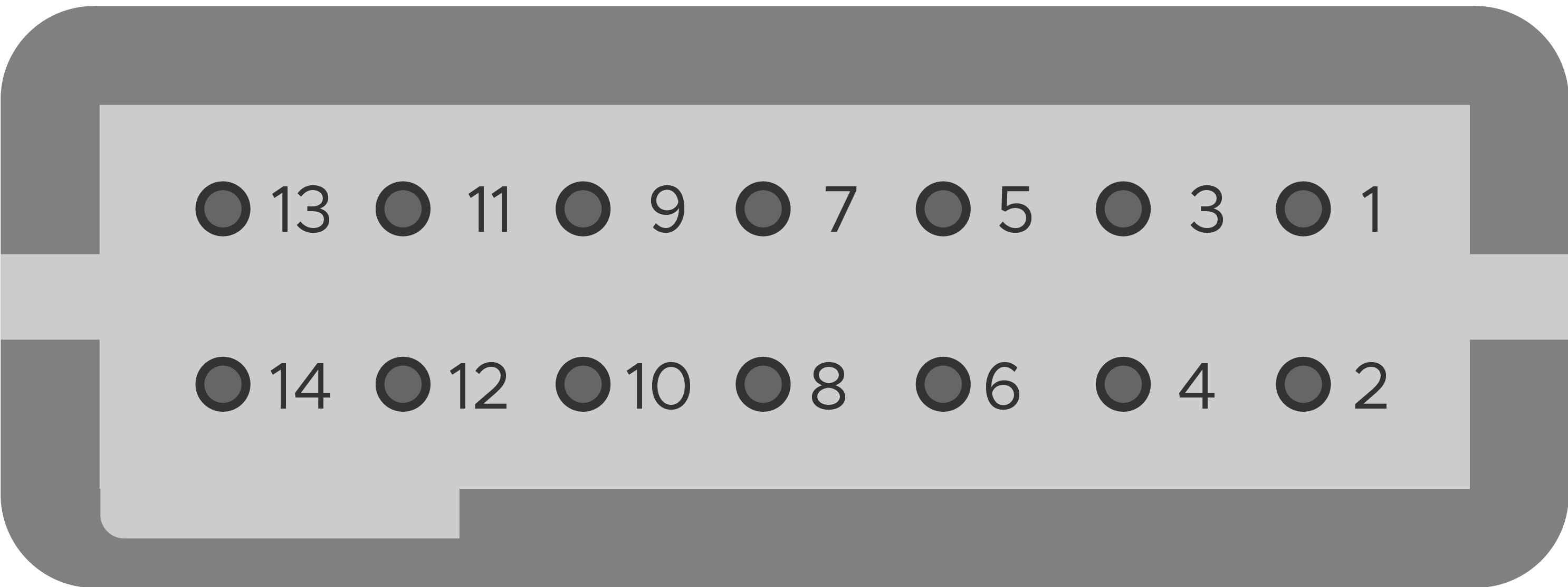 The Kāhu console has 4 GPIO ports (see Connections). Each port interfaces with 3.3 V TTL logic and has 7 output pins, 2 input pins and 1 ground pin. Following the pin numbering on the mating connector, the pin configuration for all ports is: