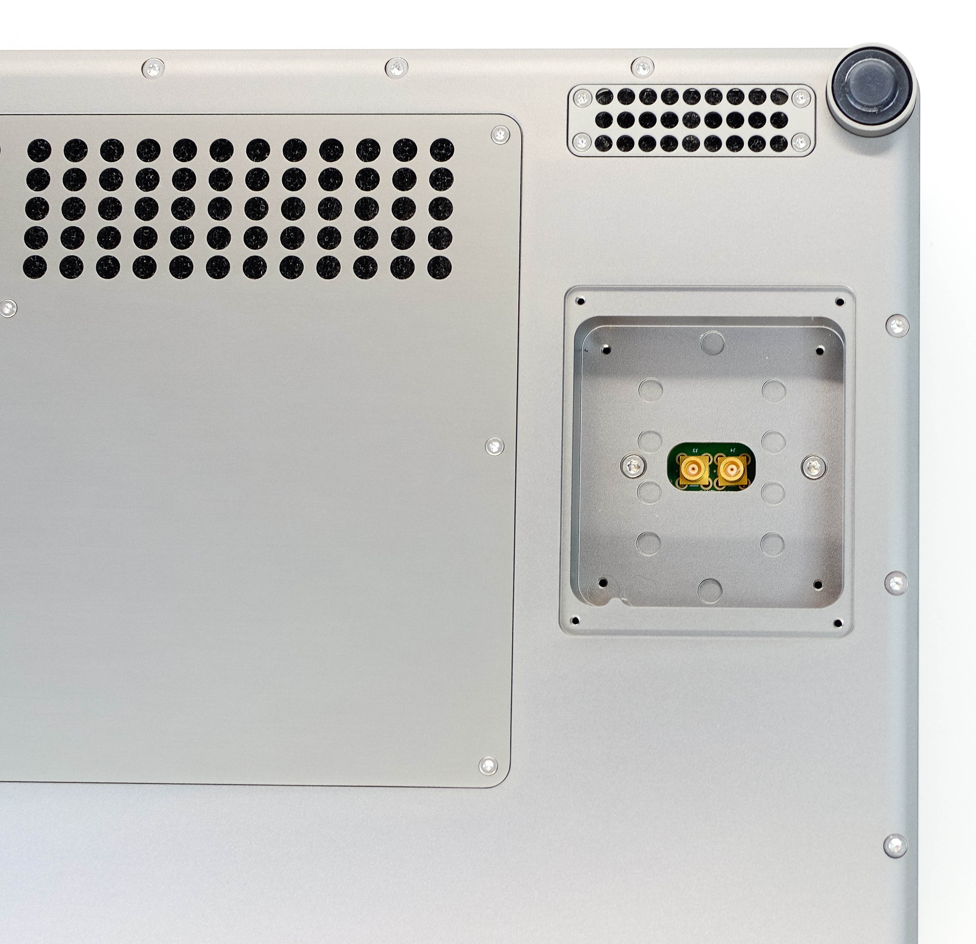 To ensure the module doesn’t begin to overheat, the dust filters should be cleaned regularly. To access the filters, ensure the module is powered off then remove all screws on each of the cooling grilles as seen below. The filters can then be removed, cleaned, and refitted.